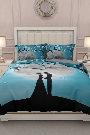 م.ن.ز-مونوهوم يوم الحب غطاء البانس المزدوج مجموعة 100٪ القطن ساتين ضوء القمر لمسة لطيفة نوم سلمي 200 سم × 220 سم - الطب