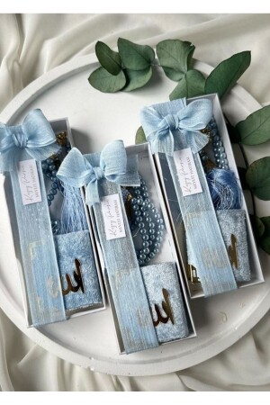 Concept Gift 24-teiliges Mevlid-Geschenk-Yasin-Set mit Tüllbeutel und blauem Rosenkranz zur Verteilung
