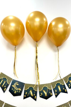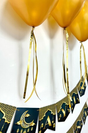 Evde- işte ramazan ruhunun yaşanmadığı tek yer kalmasın diyerek çıktık yola. Çocuklarımızın ve çevremizin dini süslemelerde daha hevesli olması için toplumun bu konuda farkında olan bireyler olması adına bu tip süslemeler en güzel seçeneklerden biri. Siz değerli müşterilerimiz için inanılmaz çeşitte ürün yelpezemizle sizlere ramazan bayramı süslerinde hizmet veriyoruz. Dilerseniz ilandaki ürün içeriğimize geçelim. Paket içerisinde 2 Metre uzunluğunda 1 adet sert kartondan yapılmış 1. kalite baskı 11 Ayın Sultanı yazısı bulunmaktadır- 3 Adet Gold Metalik Balon bulunmaktadır- 6 Metre Gold Metalik Rafya bulunmaktadır. Evlerde 11 Ayın Sultanını Hoşgeldin Ramazan süsleri ile süslemek çok farklı olacak. Ramazan ruhunu doyasıya yaşayacağınız bir ay olsun. Diğer ramazan bayramı süslemeleri için mağaza sayfamızı ziyaret edebilirsiniz.