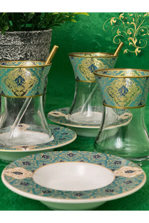 م.ن.ز- منتجنا هو 6 قطع من كؤوس الزجاج، 6 قطع من لوحات البورتسلان الجودة الأولى، مصنوعة يدوياً بالذهب والطلاء الأخضر اللون