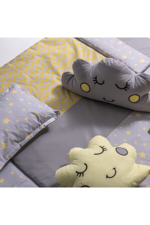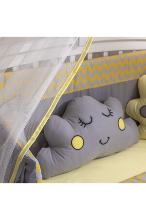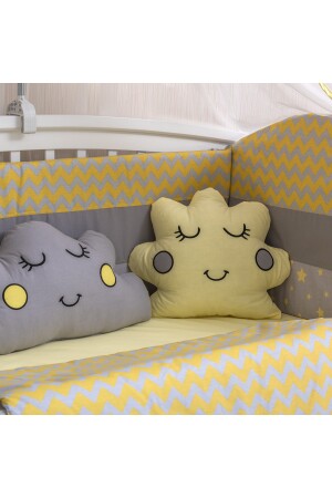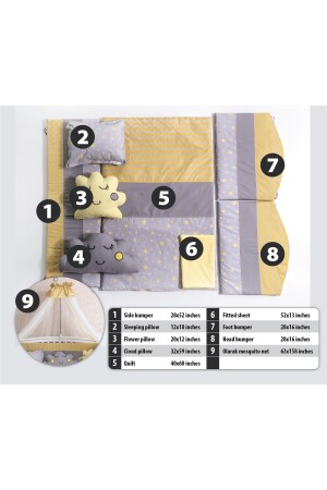 مجموعة نوم الطفل الأصفر من نوع MNZ مع صورة الطفل الصغيرة، بما في ذلك 11 قطعة شبكة دبابيس وجهاز. حجم 70x130. مناسبة لـ 70x130 سم مقاس الس