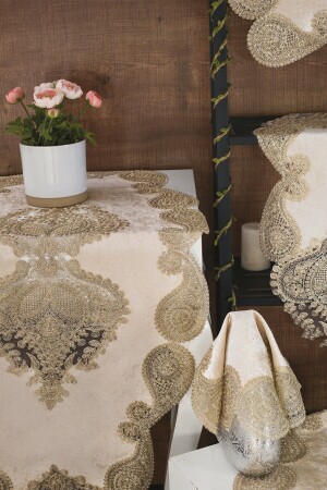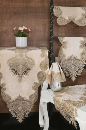 مجموعة غرفة المعيشة من طلاء MNZ-Velvet 5 قطع CAPUCİNO محتوى الفريق: 1 مسير أوفالي واسع على طاولة الطعام 1 غطاء جهاز التحكم 1 غط