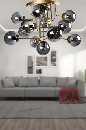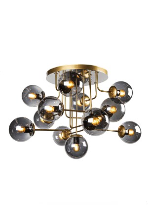 Pare Model Modern Spor Siyah 4'lu Glop Füme Camlı Avize