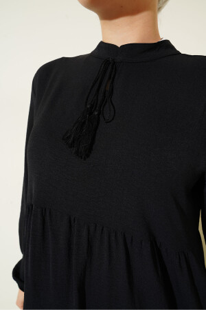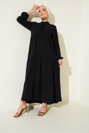 Ürün Içerigi %95 Polyester %5 likra Ürün özellikleri: Yaka Bagcikli Elbise Ürünün dikişleri model gereği ters yapılmıştır. Bu detay sıradan düz dikişin aksine elbiseye farklı ve kendine has bir görünüm kazandırmıştır… Model Bilgileri Bedeni : 38 Ürün Boyu: 136 cm Manken Ölçüsü : Boy:170 Gögüs:90 Bel:63 Basen:94 Genel Yikama ve Kullanma Talimatlari • El isi ve boncuklu ürünler hassas programda tersten yikanmalidir • Baskili ürünler zamanla dökülebilir • Yikamada ürünü bozmamak için 30 C'yi asmayiniz • Ürünü yikarken yikama talimatina uygun olarak yikayiniz • Renkli ürünlerde uygun deterjan kullaniniz • Denim olan ürünler ve koyu renkli ürünler açik renkli diger ürünler ile yikanirken boyayabilir. Birlikte yikamayiniz • Giysileri kuruturken direkt günes isigina maruz birakmayiniz