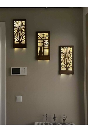 MNZ-- مجموعة من 3 خشب طبيعي شجرة قطة رسمية مع LED - أظافر ملموسة يتم إرسالها مع ذلك - يمكنك إصلاحها مع الأظافر - سوف