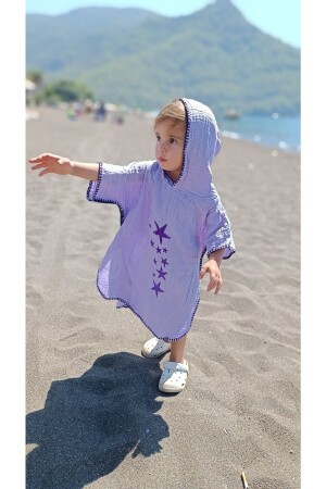 %100pamuklu Müslin Bürümcük Kapüşonlu Panço bornoz- Plaj Havlusu