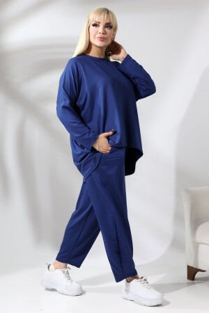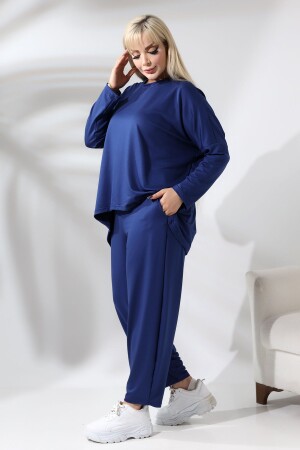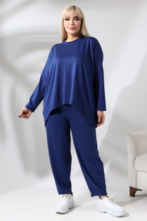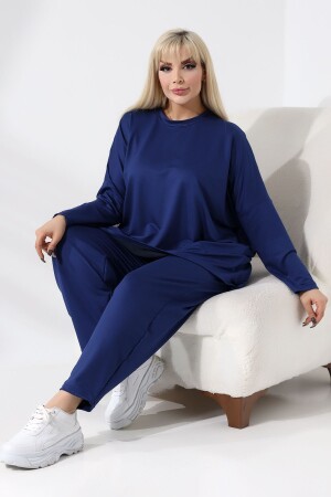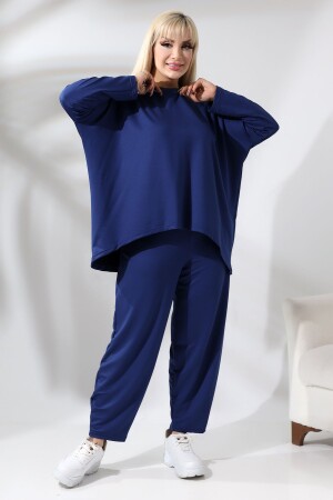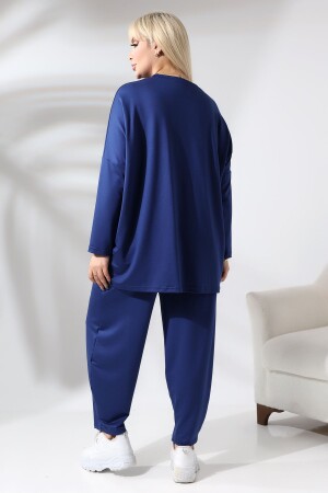 KADIN BÜYÜK BEDEN KELEBEK DESEN LACİVERT LİKRALI TAKIM