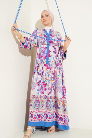 2423 Otantik Desenli Elbise - Y.Lila