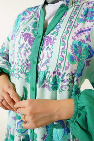 2423 Otantik Desenli Tesettür Elbise - D. Mint