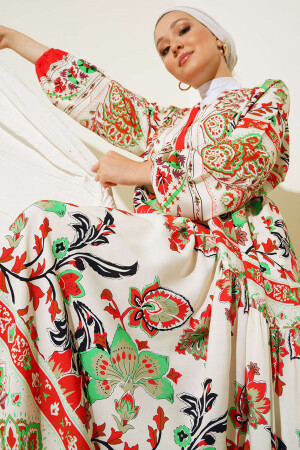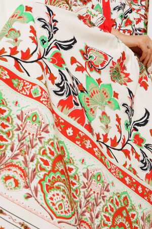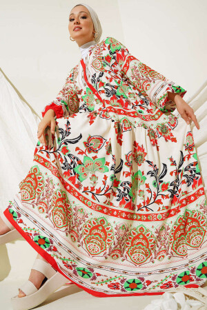 Ürün Içerigi% 100 ViskozÜrün özellikleri:Otantik Desenli ElbiseModel BilgileriBedeni : 38Ürün Boyu: 136 cmKol Boyu: 60 cmManken Ölçüsü : Boy:176 Gögüs:90 Bel:63 Basen:94Genel Yikama ve Kullanma TalimatlariYikamada ürünü bozmamak için 30 C'yi asmayinizÜrünü yikarken yikama talimatina uygun olarak yikayiniz Renkli ürünlerde uygun deterjan kullaniniz