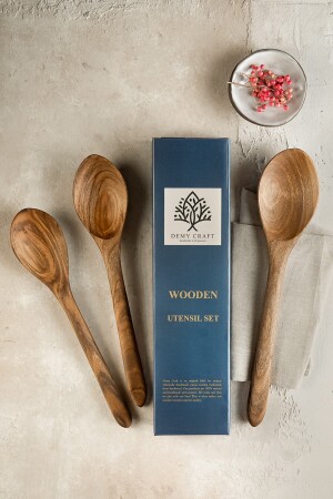 مجموعة ملعقة من الخشب من قش: مجموعة ملعقة خشبية لدينا تتكون من 3 قطع. أحجام الملعقة هي 30 سم و 28 سم و 26 سم. مثالية لمزيج الحساء