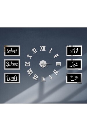 · 4 mm eva üzerine 1 mm kalınlığında gümüş görünümünde pleksi yapıştırılarak lazer kesim tekniği ile üretilir. · 1 takım saat seti ve 6 lı tablo seti bulunmaktadır. · hafif nemli bez ile temizleyebilirsiniz. Aynayı hemen kurutunuz. · her bir rakamın yüksekliği 7 cm dir. Tablonun her bir ölçüsü ise 24x16cm dir. · 3 mm mdf üzerine 1 mm pleksi yapıştırılarak üretilir. · çift taraflı bant ile montaj yapılır. Pleksi üzerinde koruyucu jelatin bulunmaktadır.