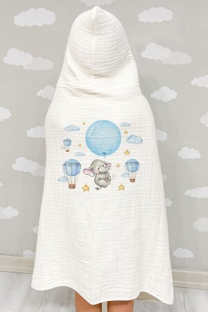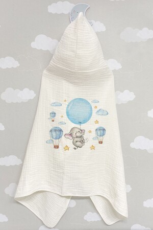 4 Kat Müslin Kapüşonlu Havlu - For Baby Serisi - Mavi Büyük Balonlu Fil BSMUHAV000015