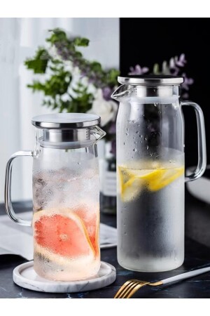 (MNZ-Glass Lid Bottle Jug 2 Set) المياه المعدلة
