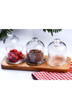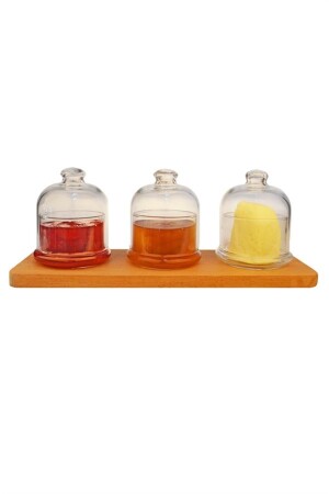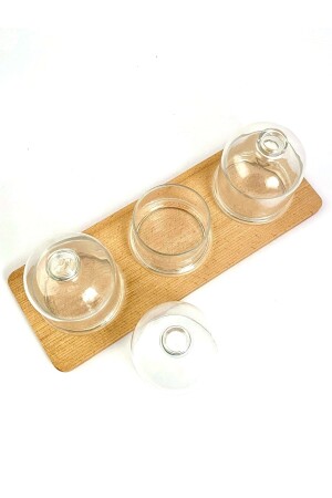 م.ن.ز-يتكون المنتج من 3 وعاءات من الخشب مع غطاء و 1 قاعدة خشبية. الخشب مصنوع من خشب البوك. منتجات الزجاج هي منتجات