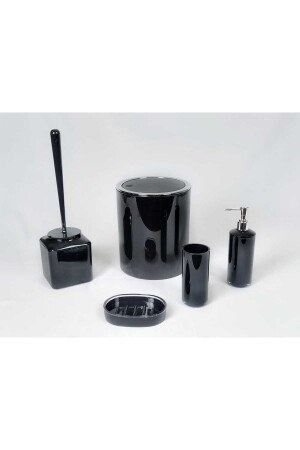5 Parça Lucas Akrilik Bambu Banyo Seti Siyah