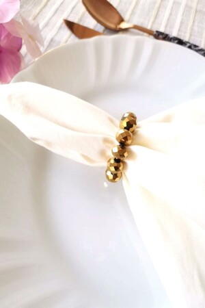 6 Adet Gold Kristal Top Boncuklu Peçete Yüzüğü