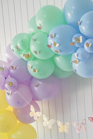 Partydekoration bestehend aus 60 bunten Schmetterlingen. Großer Schmetterling: 5 cm, kleiner Schmetterling: 3 cm