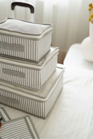 6'lı Valiz Düzenleyici Set - Gri Halat Desen Ürün Ölçüleri: 36 x 27 x 13 cm- 30 x 20 x 13 cm- 24 x 18 x 13 cm- 33 x 23 cm- 25-5 x 21 cm- 18 x 14-5 cm. İade Koşulları: Ürünlerinizin tarafınıza ulaştığı şekilde patpata sarılı- kutulu ve ambalajı bozulmamış olarak iade edilmesi gerekmektedir.