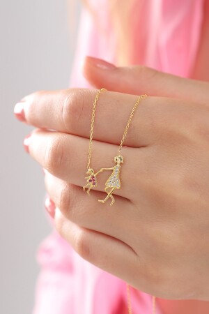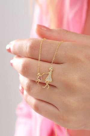 925 من النساء من سلسلة الفضة النقدية الذهبية المغطاة بالزيركون الأبيض الحجر الأم حب الطفل العنق MOM00011