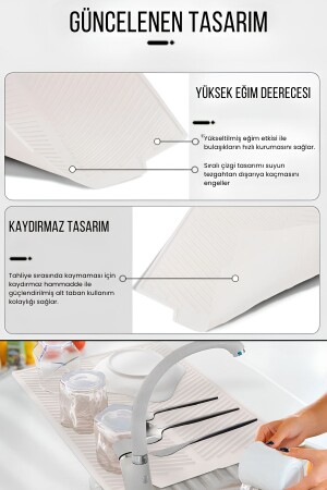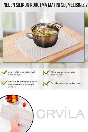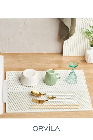Es hat eine weich-elastische Struktur und verursacht keinen Geruch. Es ist zum Waschen in der Spülmaschine geeignet. Es ist 360 Grad hitzebeständig. (Kontakt mit Feuer vermeiden) Es nutzt und organisiert das Geschirr in Ihrer Küche als Organizer. Es ist 43x33 cm groß. Hergestellt in der Türkei. Es hilft beim Trocknen des Geschirrs und lässt das restliche Wasser abfließen. Es besteht aus Elastomermaterial und ist für den Lebensmittelkontakt geeignet. Es dient auch als Untersetzer. Sie können heiße Produkte wie Töpfe und Pfannen auf das Produkt stellen. Wenn Sie nach einem Produkt suchen, das Ihre Arbeit in der Küche einfacher und angenehmer macht, ist die Abtropfmatte aus Silikon von Orvila genau das Richtige für Sie. Diese Matte eignet sich sowohl zum Trocknen Ihres Geschirrs als auch zum Abstellen heißer Töpfe oder Teller darauf. Die Matte hat eine weiche und flexible Struktur – so können Sie Ihr Geschirr festhalten und trocknen, ohne dass es beschädigt wird. Zudem besteht es aus geruchlosem, hitzebeständigem und spülmaschinenfestem Silikon – und ist somit hygienisch und langlebig. Mit der Geschirrmatte können Sie in der Küche Komfort und Qualität gemeinsam erleben. Schaffen Sie Wunder in der Küche mit der Silikon-Abtropfmatte von Orvila!