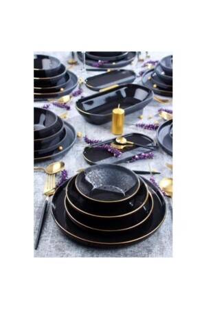 Vervollständigen Sie die Pracht Ihrer Tische mit dem königsschwarzen Tafelservice. Für eine lange Haltbarkeit wird empfohlen, die Vergoldung von Hand zu waschen. Produktinhalt