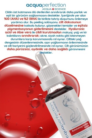 -. AHA 10% + BHA 2% Peeling Solution- ciltteki birden fazla tabakayı ölü hücrelerden arındırarak daha parlak ve eşit bir görünüm sağlar. Alpha-hidroksi asitler (AHA)- beta-hidroksi asitler (BHA) ve tahrişi azaltmaya yardımcı olan özel bir bileşen içerir. Bu peeling solüsyonu- cilt dokusunun düzelmesine yardımcı olur- gözenekleri temizler ve eşitsiz pigmentasyonu giderilmesini destekler. İçerdiği Hyaluronic Asit ve Aloe vera ile cildi kurutmadan arındırır. İçindekiler: Aqua- Salicylic Acid- Ascorbic Acid- Glycolic Acid- Tartaric Acid- Lactic Acid- Malic Acid- Gluconic Acid- Citric Acid- Daucus carota Sativa Extract- Propanediol- Pentylene Glycol- Aloe barbadensis Leaf Juice Powder- Hydrolyzed Glycosaminoglycans- Glycerin- Sodium Hyaluronate- Hydrolyzed Hyaluronic Acid- Hyaluronic Acid- Sodium Hyaluronate Crosspolymer- Panthenol- Sodium Hydroxide- 1-2-Hexanediol- Xanthan Gum- Triethanolamine- Polysorbate 20- Phenoxyethanol- Ethylhexylglycerin.