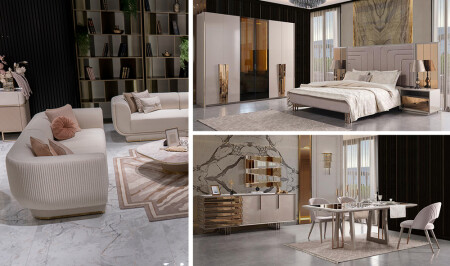 - Yatak Odası; 6 kapılı gardrop - karyola ve başlık - şifonyer ve aynası ve 2 adet komodinden oluşmaktadır