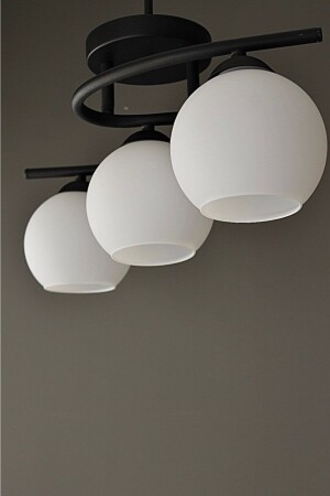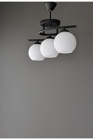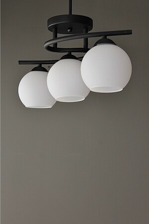 Aydınlatma Modern Siyah Beyaz Camlı Salon Oda Mutfak Poyraz 3lü Avize