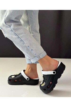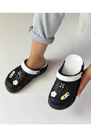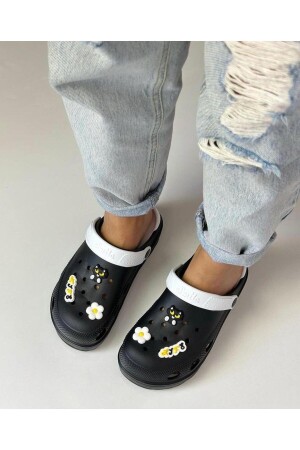 Tam Ortopedik Siyah Unisex Süslemeli Renkli Kadın & Erkek Crocs Hemşire Terliği Kroks Terlik crosslove
