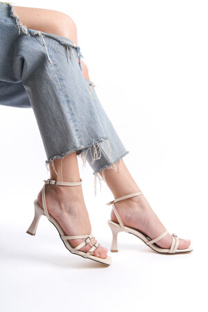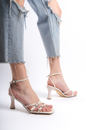 Beigefarbene Damenschuhe mit Gürtelschnalle und Absatz