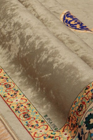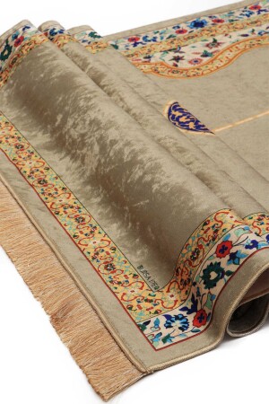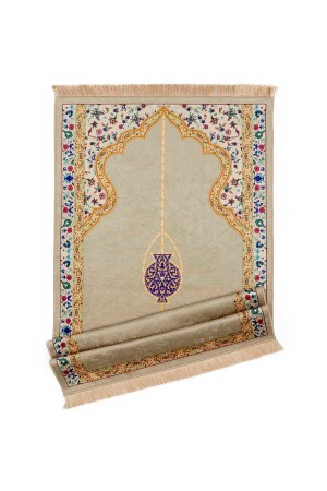 Şönil taban yapısı sayesinde kaymaz özelliği ile güvenli bir kullanım sunar ve seccadenin kaymasını önler Polyester materyal kullanımı- dayanıklılığı artırarak uzun süreli ve güvenilir bir kullanım imkanı sağlar Bej kadife dokusu- mekanınıza sıcaklık ve zarif bir görünüm katar