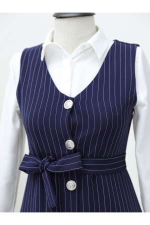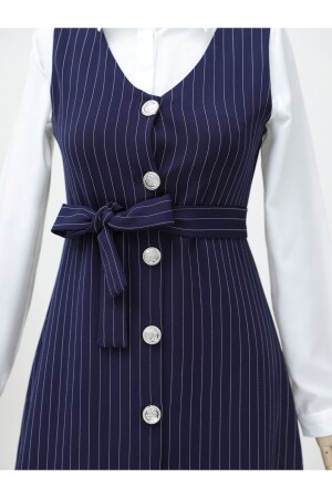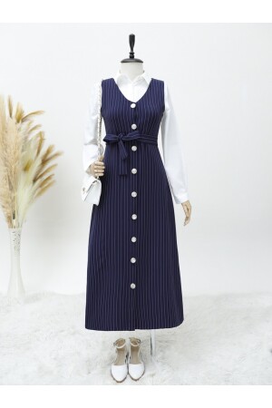 Boydan Düğmeli Kuşaklı Çizgili Jile -Laci