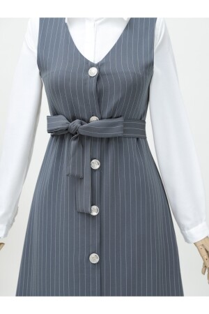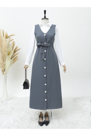 Boydan Düğmeli Kuşaklı Çizgili Jile -Gri