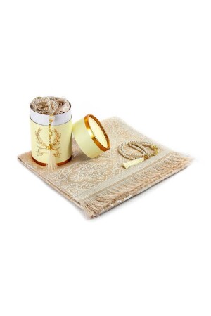 Çeyizlik Hediyelik Kutulu Krem Seccade Seti Lüks Tafta Seccade Inci Tesbih