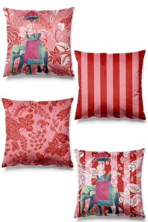 Çift Tarafı Baskılı Hint Fili Desenli 4'lü Süet Kırlent Kılıfı