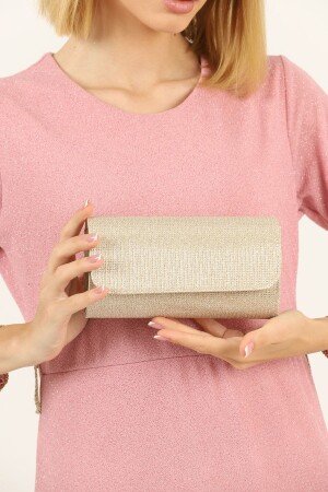 Simli Altın Renk Taşlı Işlemeli Kadın Abiye Portföy Clutch Çanta Indirimli