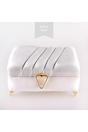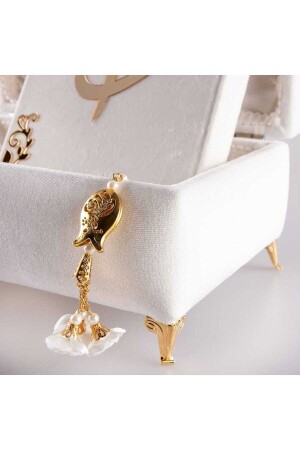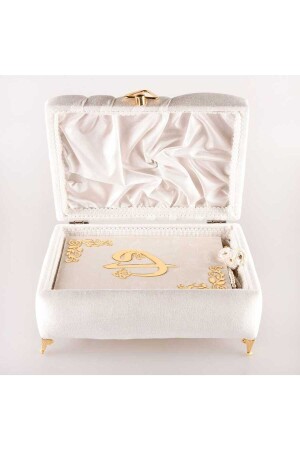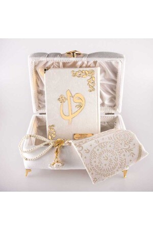 Çizgili Kutu Çeyizlik- Seccade - Tesbih - Kuran Hediye Seti (Orta Boy- Kadife- Beyaz- Elif-Vav)