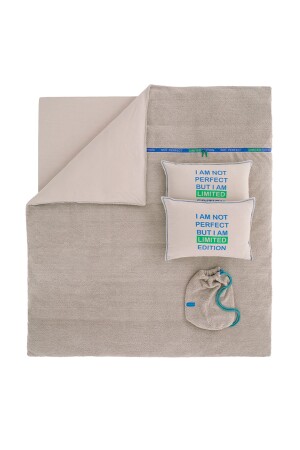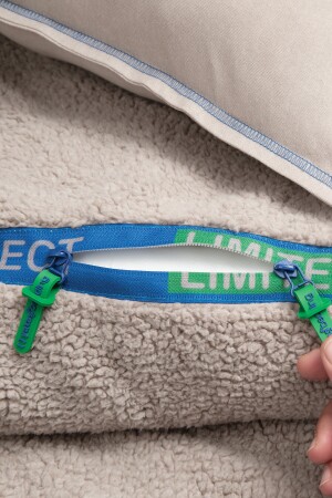 Yataş’tan yeni nesil nevresim takımıCoverMe. Özel sharpa kumaşının yumuşacık dokusu, penye çarşaf ve yastıkları ile ekstra konfor sunan CoverMe Perfect Battaniye Nevresim Takımı, eğlenceli motto yazıları ile dekorasyonda fark yaratır. Ön şerit detayında bulanan fermuarı sayesinde ister nevresim, ister battaniye, isterseniz de yatak örtüsü olarak kullanılır. Kısacası siz nasıl isterseniz o öyle… Battaniye nevresimi sharpa kumaş kalitesinde, çarşaf ve yastık kılıfı penye kumaş kalitesindedir. Ürün ÖzellikleriFermuarlı tasarımı sayesinde hem nevresim, hem battaniye hem de yatak örtüsü olarak kullanılabilir.İster yorgansız, ister içine yorgan geçirerek kullanabilirsiniz.Ekstra yumuşak dokuya sahip sherpa kumaşı ile maksimum konfor sağlar.4 mevsim ideal uyku sıcaklığı sunar.Penye ve sherpa kumaş yapısının kırışmaz özelliği sayesinde ütü gerektirmez.Makinede yıkanabilme ve çabuk kuruma özelliği ile pratik kullanım avantajı sağlar.Özgün tasarımı ile canlı ve şık bir görünüme sahiptir. Ürün İçeriği ve Ölçü Bilgisi :Battaniye Nevresim: 200x220 cm(1 Adet)Lastikli Çarşaf: 160x200x36 cm (1 Adet)Volanlı Yastık Kılıfı: 50x70 cm (2 Adet)Battaniye Kumaşından Ürün Çantası: 39x47 cm (1 Adet)Kumaş Dokuma Bilgisi :Nevresim Üst Sharpa Kumaş: %100 PolyesterNevresim Alt Penye Kumaş: %50 Pamuk %50 PolyesterPenye Çarşaf: %50 Pamuk %50 PolyesterPenye Yastık Kılıfı: %50 Pamuk %50 Polyester Yıkama Talimatı :30 derecede yıkanması tavsiye edilirDüşük devirde yıkama yapılırTamburlu kurutma yapılmamalıdırSererek kurutulması tavsiye edilirAğartma yapılmamalıdırÜtülenmesi tavsiye edilmez