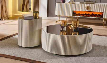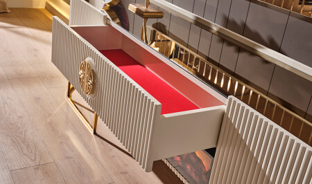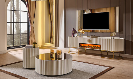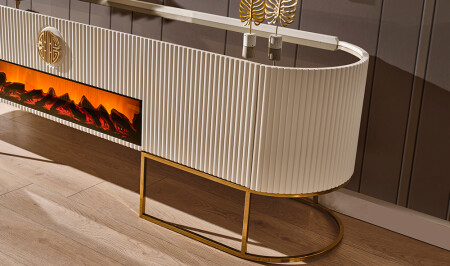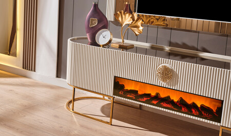 Alt kapaklı - şömine efektli ve üst panolu tv ünitesi