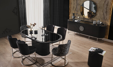 Crown Yemek Odası - Siyah - Silver
