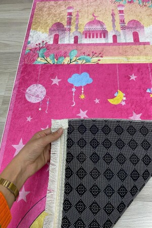 Dekoratif Dijital Baskılı Siyah Kaymaz Taban Eğitici Küçük Çocuk Seccade Namazlık 60 x 100