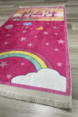 Dekoratif Dijital Baskılı Siyah Kaymaz Taban Eğitici Küçük Çocuk Seccade Namazlık 60 x 100
