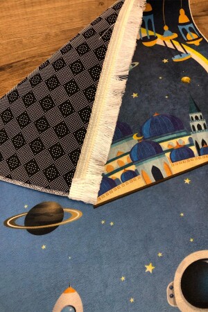 Dekoratif Dijital Baskılı Siyah Kaymaz Taban Eğitici Küçük Çocuk Seccade Namazlık 60x100