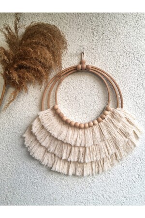 Dekoratif Makrome Boncuk Detaylı Duvar Süsü Duvar Dekorasyonu Markobon