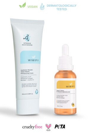 WIWIFY Derin Nem & Canlandırma Seti WIWIFY Derin Nem & Canlandırma Seti: Cildiniz İçin Ultra Nemlendirme ve Aydınlanma En iyi cilt bakımı için mükemmel bir kombinasyon mu arıyorsunuz? WIWIFY'nin özel Derin Nem & Canlandırma seti- cildinizi taptaze ve parlak bir görünüme kavuşturacak. Bu sette- cildinizin derinlemesine nemlenmesini ve canlanmasını sağlayacak iki özel ürün bulunmaktadır. Set İçeriği: WIWIFY Su Bazlı Yoğun Nemlendirici Krem: Jojoba- baobab yağları- hyaluronik asit ve botanik kolajen ile cildinize ultra bir nemlendirme sağlayarak- cildinizin ihtiyacı olan nem ve sıkılığı yerine getirir. Gün boyu yumuşacık ve sağlıklı bir cilt için idealdir. WIWIFY C Vitamini Serum: C Vitamini ve 3-O-Etil Askorbik Asit ile cildinizi yenileyerek- cilde yoğun bir parlaklık ve aydınlanma sağlar. Aynı zamanda botanik kolajen desteği ile cildinizin sıkılığını artırır. Neden WIWIFY Derin Nem & Canlandırma Setini Tercih Etmelisiniz? Çift Etki: Bu set- hem cildinizi derinlemesine nemlendirir hem de parlaklık ve canlılık kazandırır. Tüm Cilt Tipleri için Uygun: Yağlı- karma veya kuru cilt tipleri için mükemmel bir bakım sunar. Pratik Kullanım: Günlük cilt bakım rutininize kolayca adapte olan bu set- sabah ve akşam kullanıma uygundur. Kullanım Talimatları: WIWIFY Nemlendirici Krem: Temizlenmiş cilde nazikçe masaj yaparak uygulayın. El- yüz ve vücut için idealdir. WIWIFY C Vitamini Serum: Yüzünüze birkaç damla damlatın ve dairesel hareketlerle masaj yaparak uygulayın. Önemli Uyarılar: Harici Kullanım İçin: Bu set yalnızca harici kullanım içindir. Alerji testi yapılması önerilir. Göz Temasıdan Kaçının: Göz ile teması önleyin. Eğer temas olursa- bol su ile yıkayın. WIWIFY Derin Nem & Canlandırma seti ile cildinizin sağlıkla dolu- parlak ve enerjik bir görünüme kavuşmasını sağlayın! Daha fazla bilgi ve sorularınız için .