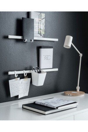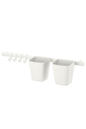 Schiene: Stahl, Polyester-Pulverbeschichtung. Endteile/Kappe: Polypropylen-Kunststoff. Haken: ABS-Kunststoff. Länge: 60 cm, Höhe: 14 cm, Tiefe: 13 cm. Dadurch entsteht ein leerer Platz auf der Arbeitsplatte, da die Küchenutensilien griffbereit bleiben. Sie können Ihre Küchenutensilien an Haken oder in Kisten organisieren.