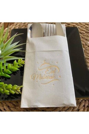 Eid Mubarak Gold Yaldızlı Cepli Peçete Lüks (12 adet) Ürünün paket içi sayısı: 12 adet. Ürün ebatları: 40x40 cm Cepli kağıt peçete. Beyaz üzeri altın varak baskılı peçete Yaldızlı Ramazan baskılı peçeteler ile ramazanda hazırlayacağınız iftar sofralarınızın sunumunu zenginleştirmek için kullanabilirsiniz.