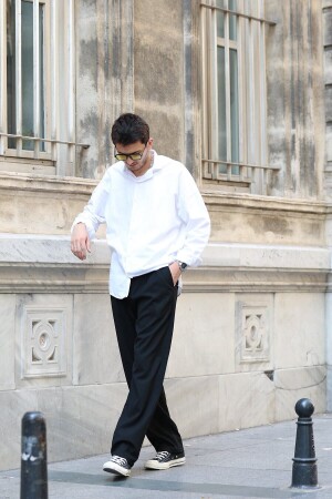 Stoffhosen mit plissiertem Baggy-Muster für Herren werden auch als weite Beinmuster und koreanischer Schnitt bezeichnet. Auf der Vorderseite der Hose befindet sich ein doppeltes Faltendetail. Die Hälfte der Taille ist elastisch und passt sich leicht Ihrem Körper an. Sein Muster ist ausgebeult und es ist ein sehr bequemes Muster. Es hat zwei Taschen auf der Rückseite. Es kann mit einem Gürtel verwendet werden. Das Model ist 1,84 Meter groß und wiegt 77 Kilo. Sie trug Größe M. Stoffinhalt: 100 % Baumwolle. Waschanleitung: Bei 30 Grad waschen. Größenpräferenzen: 160–195 cm – 50–78 kg sollten Größe S bevorzugen. 160-195cm – 78-87 Kilo sollten Größe M bevorzugen. 160-195cm – 87-97 Kilo sollten Größe L bevorzugen. 160-195cm – 97-110 Kilo sollten Größe XL bevorzugen.