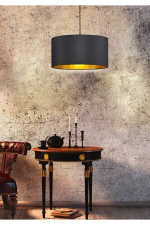 مصباح العجلة من الأقمشة السوداء 38" من المنتصف MNZ-Exclusive Black Fabric 38' مع تفاصيل الذهب AYD-2907